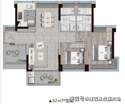 (建面约 82㎡三房两卫户型产品详情与亮点)