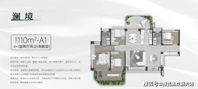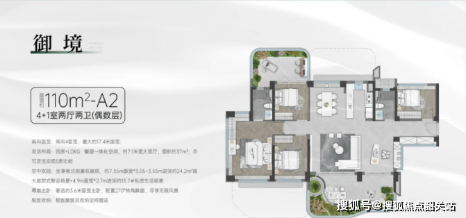 110㎡:通过大阳台设计,实际使用面积可达170㎡,极大地拓展了实用空间。