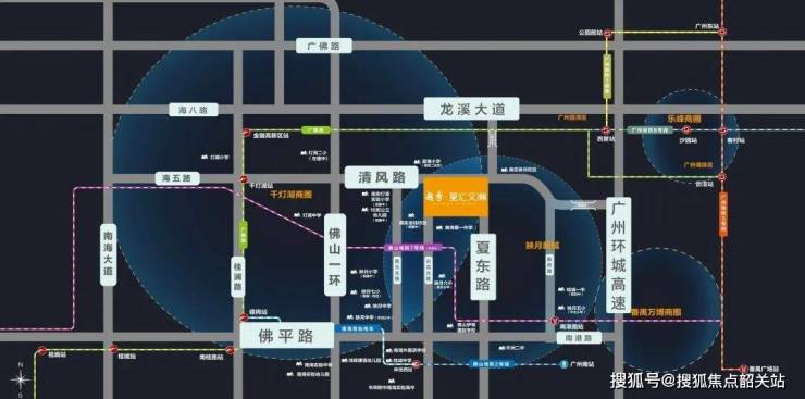 项目位居千灯湖东拓区与映月新城的交汇处,处于广佛融城的黄金地段。该区域近年来发展迅速,吸引了大量高新技术企业总部进驻,形成了强劲的经济增长动力。交通网络方面,项目周围拥有三纵三横的路网体系,主干道连接佛山一环,便捷通达金融高新区和广州市中心。多条公交线路和快速通道使出行便利无忧。环绕三大商圈,千灯湖与映月湖双核心商业圈以及环宇城、万达等大型购物中心近在咫尺,满足居民生活购物需求。丰富的绿地和公园资源进一步提升居住环境质量,打造宜居生态社区。