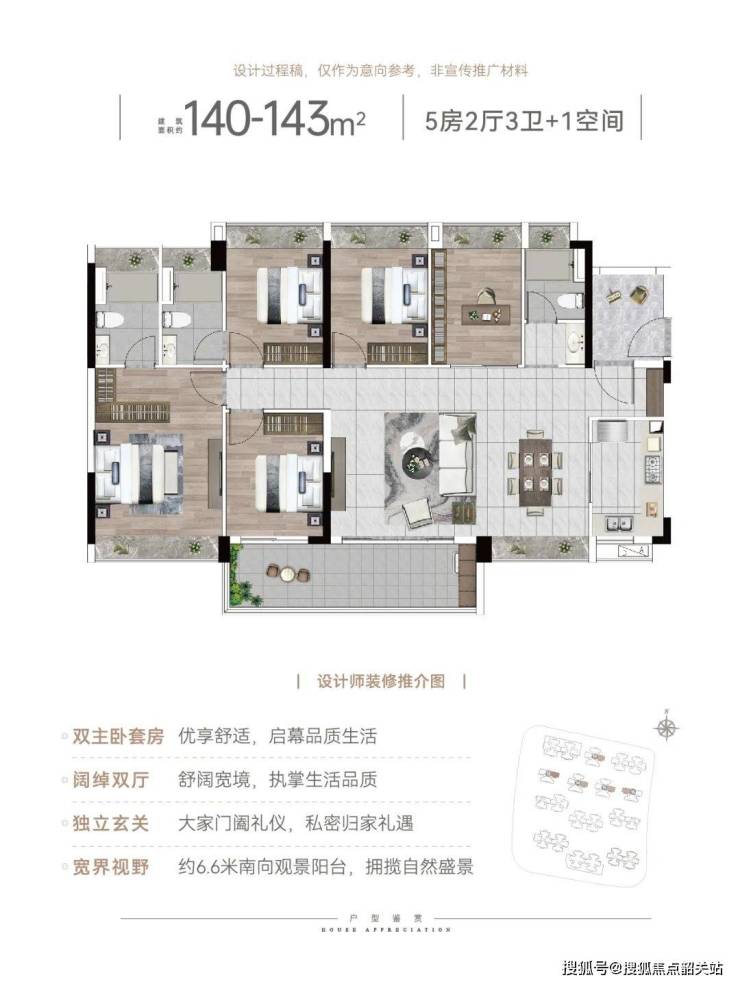 目前在售的户型包括建面96平3+1房、建面120平4+1房、建面122-126平4+1房以及建面约140平五房。这些户型设计注重动静分离,格局方正,并且大多数房间朝南,确保充足的采光和通风。其中,建面140平五房户型更是在空间布局上进行了优化,提供了更加宽敞的生活空间。