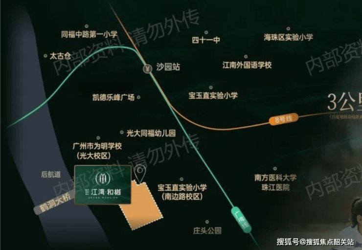 首先,轨道交通是该项目的一大亮点。项目紧邻地铁8号线沙园站,直线距离约800米,步行即可轻松到达。8号线作为广州南北走向的重要干线,连接了芳村、荔湾、海珠、天河等多个核心区域,乘客可以轻松换乘至其他线路,快速抵达广州塔、体育西路、珠江新城等热门目的地。此外,广佛线燕岗地铁站距离项目约1.2公里,为往返佛山及广州中心城区提供了另一条便捷的通道。广佛线的开通,不仅加强了广佛两地的联系,也为居住在越秀江湾和樾的业主提供了跨城出行的便利选择。