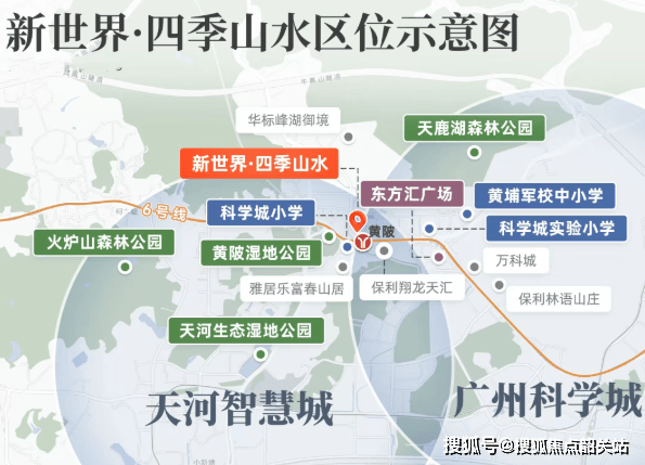 房地产的价值,首看地段,次看配套,终看人群。新世界·四季山水的选址逻辑,堪称教科书级别的精准。项目雄踞广州东进第三科创中轴的核心节点,这里是天河智慧城与黄埔科学城两大国家级科创中心的“双芯”交汇处。