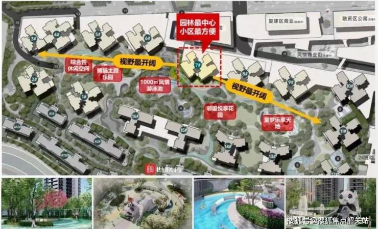 沿街商业、商业广场、大气入户大堂、风情游泳池、邻里悦享花园、观山眺台……