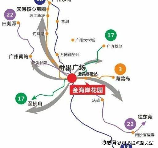交通枢纽优势:尊处番禺客运站与番禺广场双 TOD,形成五轨交汇(3 号线 / 3 号线东延线 / 18 号线 / 22 号线 / 17 号线)的交通格局,且一横五纵大动脉畅通四方,为居民提供了高效便捷的出行条件,轻松畅达城市各处。