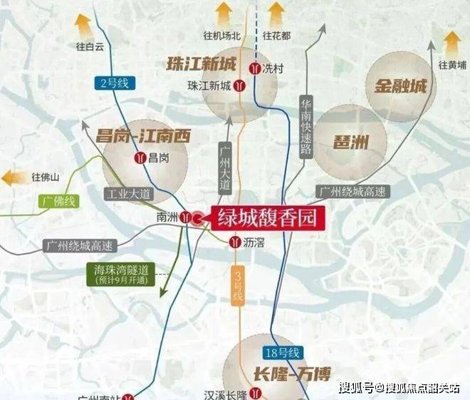 交通方面,这个项目堪称双地铁上盖的典范。家门口就是2号线和广佛线换乘的南洲站,C1出口步行仅百米距离。未来地库将直通地铁站,实现全程风雨无阻的归家体验。从这里出发,3站就能到客村,5站直达珠江新城,7站抵达琶洲,8站可达万博或金融城,通勤效率极高。广佛线还能快速连接佛山区域。自驾同样便利,项目位于广州新中轴南延线上,周边有广州大道南、环城高速等主干道,去珠江新城不到10公里,琶洲12公里左右,半小时内基本搞定。海珠湾隧道建成后,到广州南站也只需20分钟左右,立体交通网络让日常出行变得轻松自在。