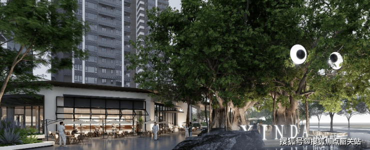 双公园环绕:自带约2730平方米滨水公园和约4512平方米繁花逸园,大门处保留百年榕树打造休闲空间“榕悦广场”。