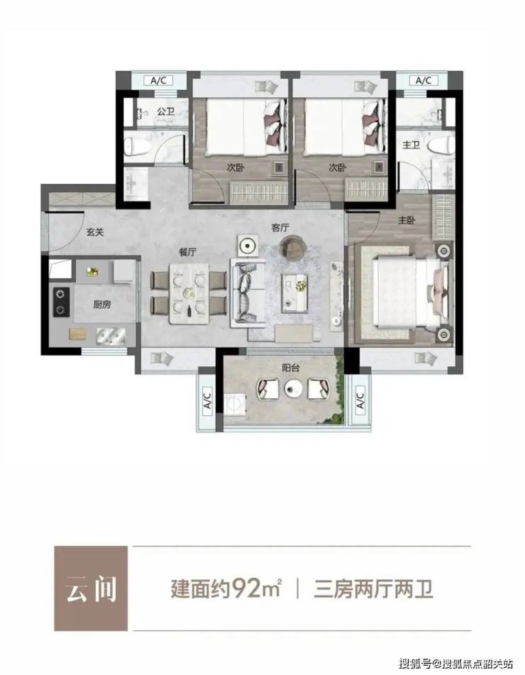 92㎡三房两卫:三口之家的热门之选