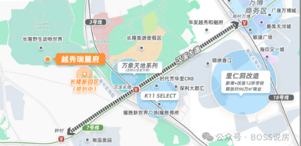 交通是城市的动脉,决定了生活的半径与效率。越秀·瑞麓府坐拥长隆万博板块完善的立体交通网络,构建了“多维主干道 + 快速路网 + 轨道交通接驳”的便捷出行格局,让居住者能够轻松通达广州全城及粤港澳大湾区各地。在道路交通方面,项目紧邻钟顺路,可快速连接汉溪大道、南大干线等城市交通大动脉。通过这些主干道,居民仅需约10分钟车程即可直达万博CBD核心区,享受繁华的商业与商务配套;经由华南快速路或新光快速路,约30分钟即可抵达珠江新城、琶洲会展中心等城市核心商务区;通过东新高速,约20分钟可达荔湾、海珠等老城区。这种四通八达的路网结构,极大地缩短了通勤时间,提升了出行效率。在轨道交通方面,虽然项目距离地铁7号线钟村站直线距离约1.2公里(步行约15分钟),但其周边的交通接驳体系十分完善。项目特别设置了专属接驳巴士,无缝连接社区与各大地铁站点及商业综合体,有效解决了“最后一公里”的通行问题。乘坐7号线,仅需2站即可到达南村万博站,换乘18号线快车,3站可达冼村,4站直通珠江新城,全程仅需约15分钟,真正实现了与城市核心区的快速联动。此外,项目距离广州南站约5公里(地铁3站),可便捷搭乘高铁及城际列车,1小时直达深圳、佛山、东莞、中山、珠海等大湾区主要城市,形成“湾区1小时生活圈”。无论是日常通勤上班,还是商务出差、周末休闲出游,越秀·瑞麓府都能提供极其灵活且高效的交通条件,让每一位居住者都能在城市快节奏中保持一份游刃有余的优雅。