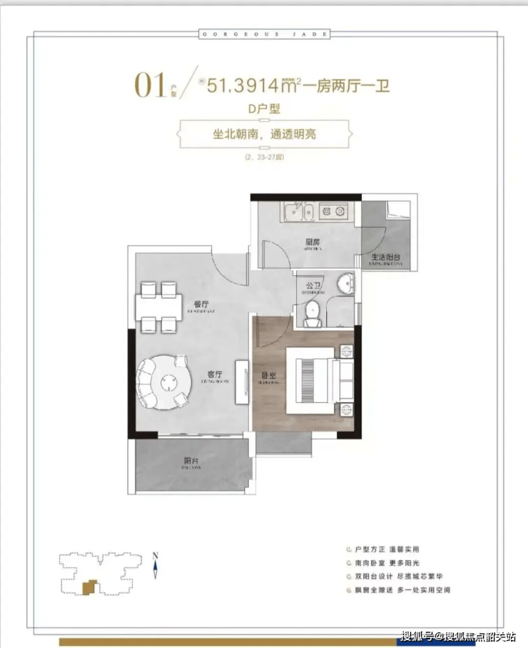 51㎡一居室:专为单身人士或年轻夫妻量身定制。虽然面积紧凑,但采用开放式厨房与LDK一体化布局(客厅、餐厅、厨房打通),最大化利用每一寸空间。主卧朝南,采光良好,适合首次置业或投资出租。