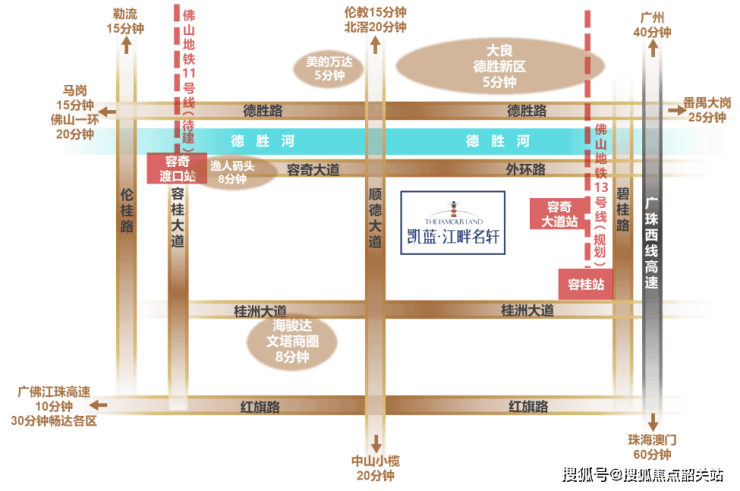 双地铁:广佛11号线容奇渡口站(待建);广佛13号线容奇大道站(规划中)