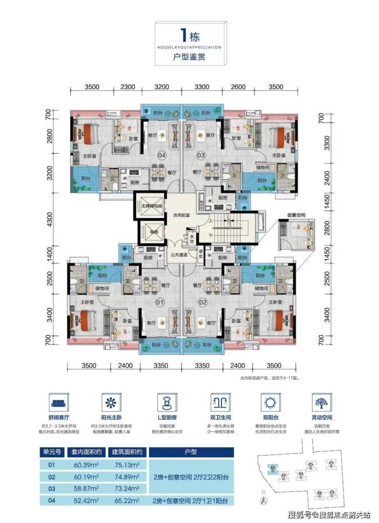 两梯四户低密度设计,户型均为65-75方的对流型三房,得房率高达90%。