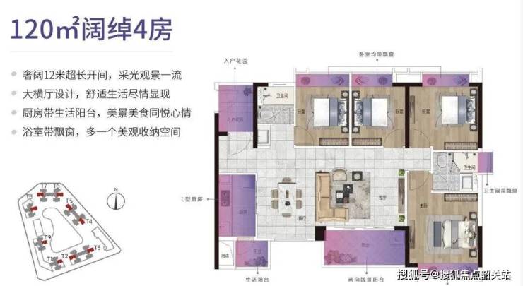 120㎡四房两厅:横厅长约 12 米,视野采光一流,四房设计可满足 “三代同堂” 的生活需求,空间开阔,居住舒适度高。
