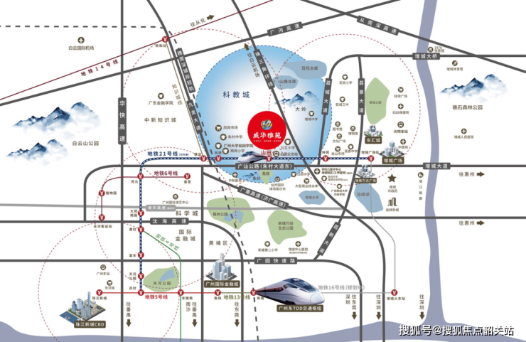 30分钟直达天河,北三环高速50分钟到白云机场,30分钟到东莞市区,1小时到深圳;