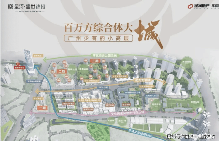 然而,在城市“南拓”的战略主轴——南大干线经济带上,一个总建筑面积约114万平方米的“城中之城”,却以其宏大的规模与前瞻的规划,在“城市效率”与“居住舒适”之间,开辟了一条珍贵的中间道路。它,就是星河·盛世锦城。这个由拥有35年城市运营经验、资产超千亿的星河控股集团打造的百万方综合体,其价值不仅在于“大”,更在于“全”与“低”。项目分五期开发,自成一个功能完善的生态系统,而近期推出的全新三期“玖璋”组团,更将这种“全维生活”与“低密舒居”的理念推向了新的高度。