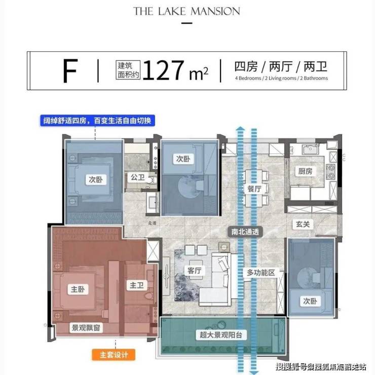 在售户型涵盖3-4房,得房率85%-88%(含赠送面积),远超区域平均80%的水平。明星户型解析: