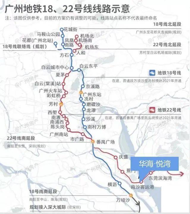 ②地铁22号线(广深跨城高速地铁-在建):规划途径南沙客运港站,北达广州南站、白云机场,东至东莞滨海湾站、深圳沙井站,换成可达宝安机场。