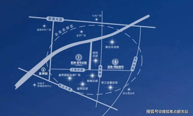 ●金洲商圈、万达商圈、总部区三商圈交汇