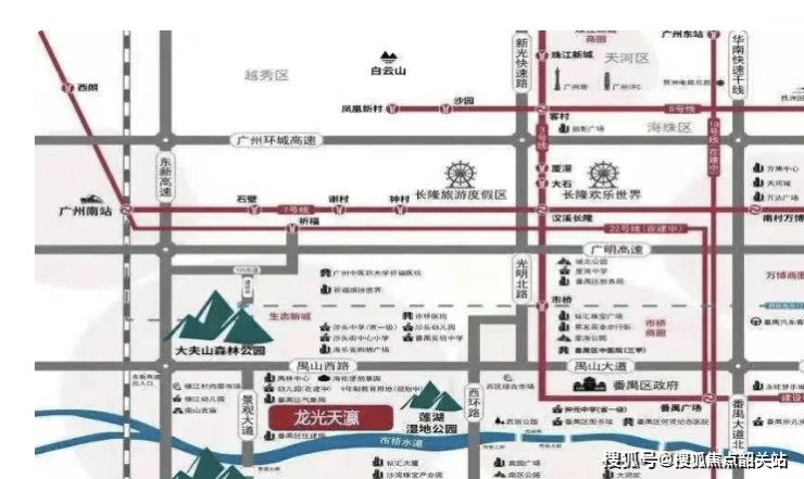 项目交通以自驾为主,区位优势显著,紧邻禺山西路与景观大道,景观大道北延段开通后,5-8分钟可达祈福板块。15分钟车程直达广州南站,快速对接广深港高铁;20分钟抵达海珠、荔湾区,40分钟通达珠江新城,通过主干道网络轻松融入广州主城生活圈。虽无地铁直达,但周边路网密集,可快速接驳地铁3号线、7号线等线路,借助广州南站枢纽,1小时内可通达粤港澳大湾区主要城市,无论是日常通勤还是跨城出行,都能通过多维交通网络轻松实现。