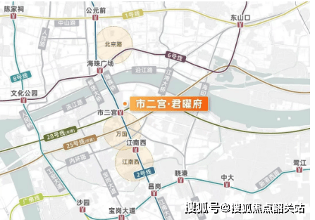 项目地处老城区,地段优势显著。与市二宫地铁站直线距离约 80 米,步行不到 200 米。北侧距珠江边直线距离约 500 米,沿江南大道直上海珠桥,一江之隔便是越秀区,与海珠广场、北京路等老牌商圈近在咫尺。未来 28 号线开通后,将形成纵横两条线交汇的交通格局,出行四通八达。