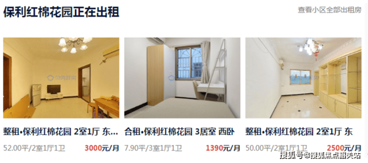 在贝壳网上搜索可见,保利红棉花园目前租金不高,52平方米的两房单位租金为2500元-3000元/月。