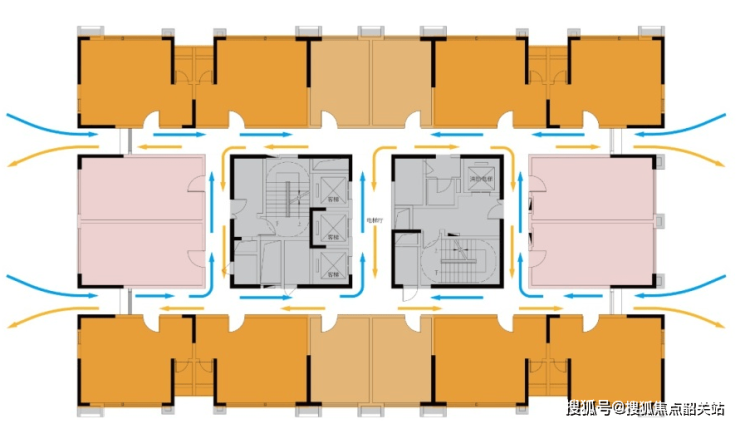 项目摒弃传统单过道,项目采用双环通走廊,极大提升通风采光。