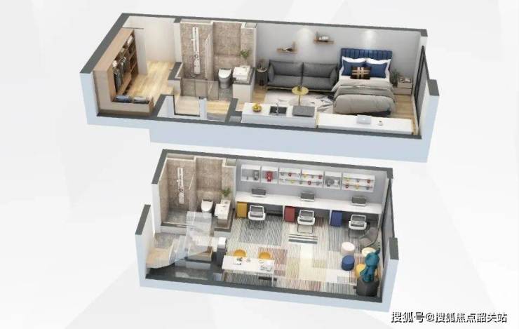 公寓部分规划了3栋21层高楼栋,4梯16户loft设计,共推出288套房源,户型层高4.5米,为精装交付。