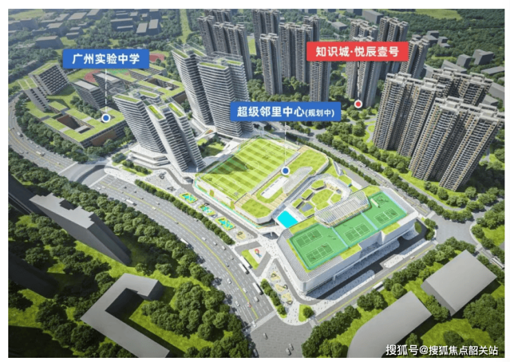 超级邻里中心: 项目毗邻广州首个集休闲、体育运动、购物、娱乐、社区市政服务等业态于一体的 27 万方超级邻里中心(规划中)。这是一个对标新加坡“淡滨尼”模式的综合体,集体育馆、商业街、酒店式公寓、高端办公楼、生鲜超市等于一体,将是知识城首座大型文体商业综合体。建成后,业主下楼即可享受一站式生活服务。
