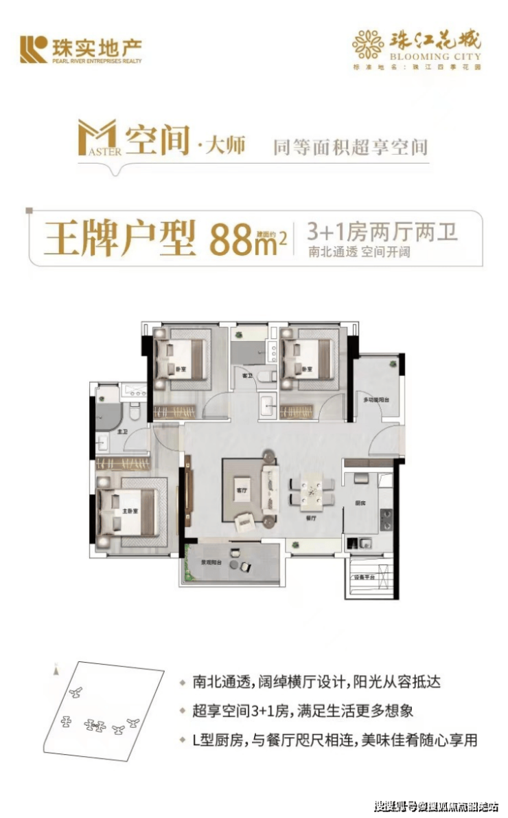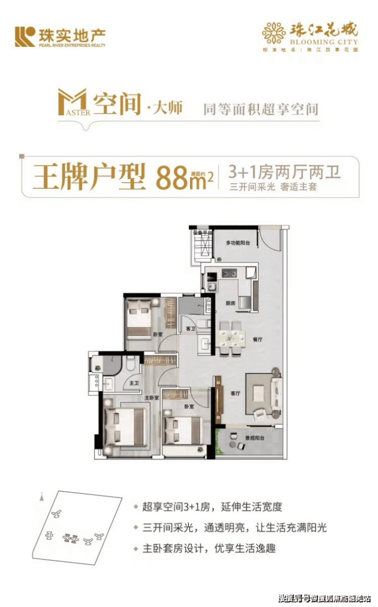 户型创新:同等面积多一房(如88㎡做3+1房),阳台宽度最高达7.2米!