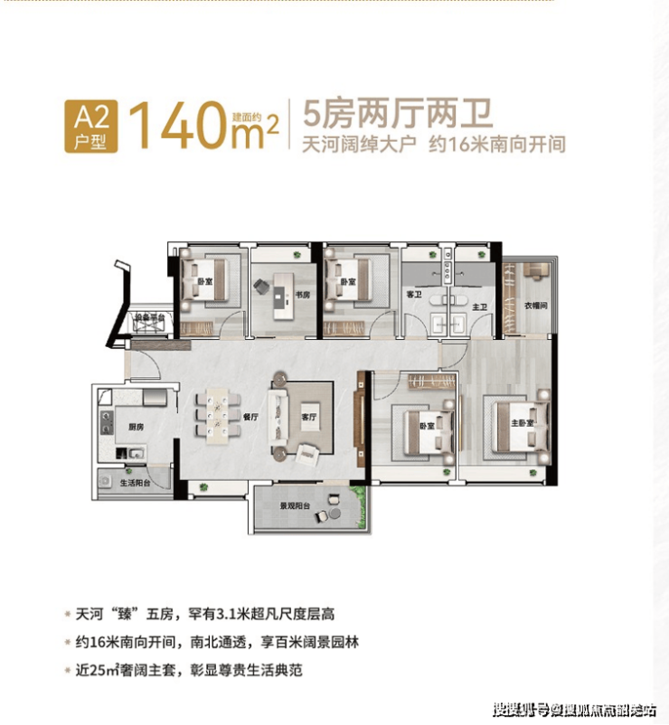 房源:仅剩8套140㎡5房户型,阳台可观珠江支流景观!