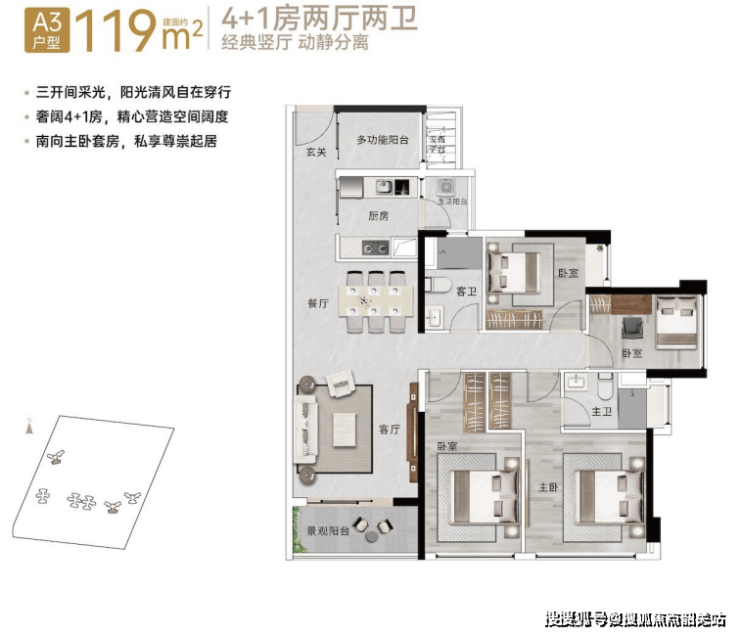 户型革命:88㎡做3+1房,使用率达105%(对比珠江新城次新房使用率仅75-90%),119㎡竖厅户型实现LDK一体化,阳台宽度6.8米!