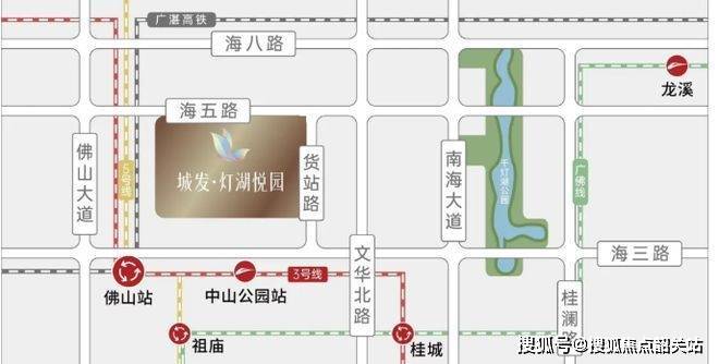 城发・灯湖悦园交通网络极为发达,构建了多维立体交通体系。道路交通方面,海五路作为千灯湖东西串联中轴线,即将全面通车,约 3KM 直达千灯湖核心区,驾车出行方便快捷,可轻松抵达城市核心区域。地铁交通优势明显,毗邻地铁 3 号线、5 号线,约 700 米可达 3 号线中山公园站(预计今年上半年开通),3 站到桂城,8 站到广州荔湾,大大缩短与周边城市区域的时空距离,方便日常通勤、商务出行及休闲旅游。高铁交通方面,约 1.5 公里处是佛山市中心唯一的高铁站,预计 2025 年通车,规划的广湛高铁线路将实现 10 分钟到广州越秀,1 小时畅玩大湾区,为长途出行和区域交流提供极大便利,真正融入大湾区生活圈。