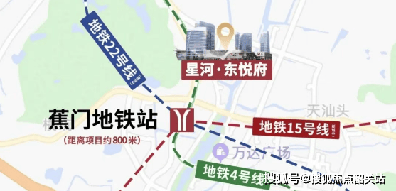 交通十分便捷,步行可达 4 号线蕉门地铁站,畅达南沙北站、南沙南站双轨道枢纽,周边邮轮母港、深圳宝安机场环绕,1 小时内可畅达大湾区城市群。未来将形成三地铁交汇格局,4 号线、15 号线(规划中)、22 号线(规划中)规划连通莞深,进一步接驳湾区繁华,为居民的出行、商务活动及旅游提供极大便利。