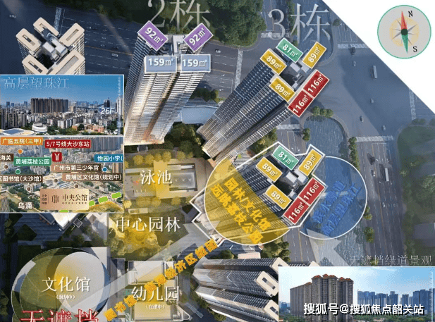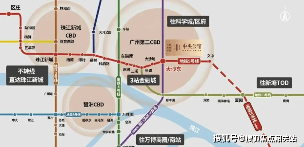两轨:地铁5号线与7号线交汇的大沙东站,距离项目约800米,可快速到达天河金融城、珠江新城、琶洲CBD等地。
