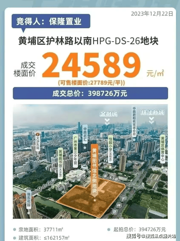 黄埔图书馆北侧地块以每平方米24589元的地价(未扣除配建)竞拍,扣除配建后地价超过2.7万元/平方米,成为区域新地王。这块地吸引了保利、招商、华发等多家国央企的关注,最终由保利以总价398726万元成功竞得。项目推广名为保利华发招商中央公馆,地理位置优越,位于老黄埔核心地段,周边配套成熟。老黄埔正致力于打造一江两岸沿港经济带,旨在建设“广州市总部集聚核心区”,已吸引众多知名企业入驻。