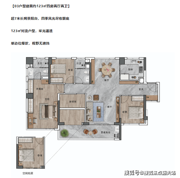 更值得一提的是,项目超80%的户型为望江户型,270°环幕视野,能够将400米宽的东平河江景尽收眼底,真正实现“推窗见江”的居住体验,让业主在自家阳台就能欣赏到江景风光,感受自然的静谧与壮阔。在装修标准上,项目也十分用心,配备精铸装甲门、中央空调、厨房品牌三件套(含洗碗机)等高质量交标,兼顾安全性、舒适性与实用性,省去业主后期装修的麻烦,实现拎包入住的便捷,同时也提升了居住的品质感。其中,项目120-150㎡户型更是凭借优越的空间设计和景观优势,荣登“佛山市120-150㎡产品成交TOP1”,成为改善市场的领跑者。