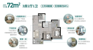 远洋天成主力户型涵盖69–124㎡三至四房,严格遵循新规设计,强调功能分区与空间效率。尤为突出的是,项目使用率高达93%,部分户型通过阳台、飘窗等赠送面积进一步提升实用性。例如,82㎡单位可实现四开间朝南、南北通透;107㎡户型则打造南北对流双阳台四房格局,采光通风俱佳。所有房源均为精装修交付,标准统一,品质可控,大幅降低后期装修成本与时间投入。