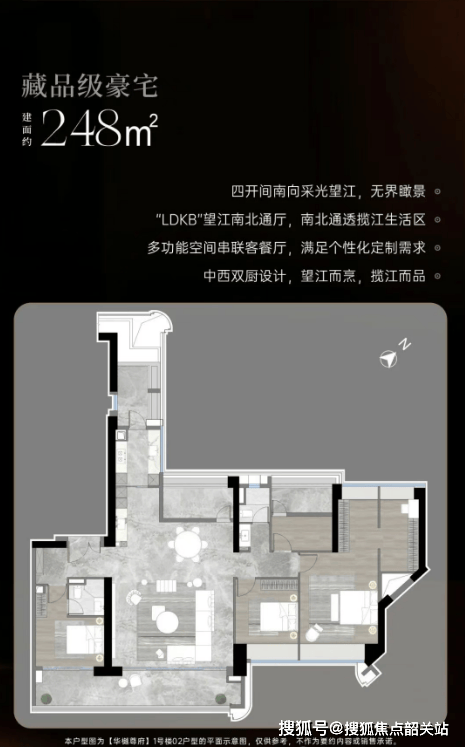 248平方米:宽敞明亮,南北通透,客厅和主卧均面向南向江景,视野开阔。
