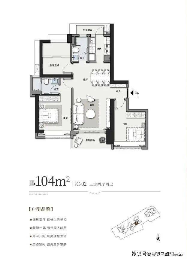 建面约 104㎡三房两厅两卫:南向3房,双阳台延展生活空间,阔绰会客空间可承载欢乐时光。