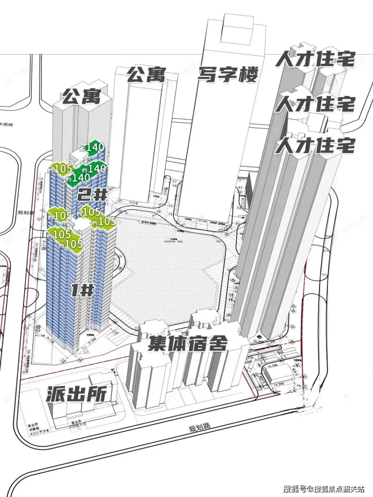 东地块:2 栋住宅、2 栋公寓、1 栋写字楼、3 栋人才房,住宅约 265 户