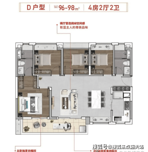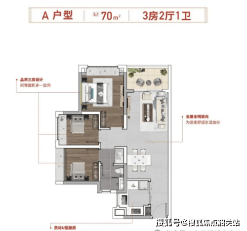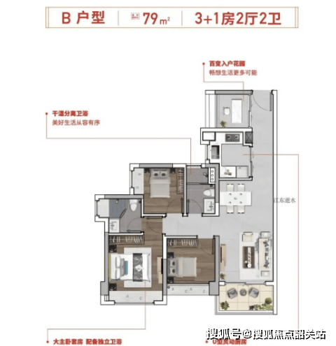 高使用率:户型设计紧凑,空间利用率高,如79㎡即可实现三房带主套。