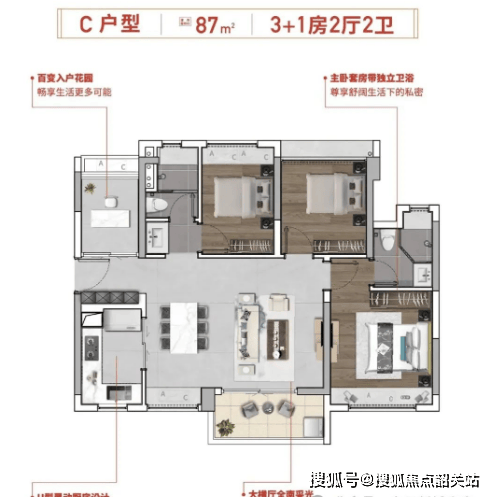 这些户型设计紧凑合理,使用效率高,特别是79㎡和87㎡户型,能够在有限的空间内提供更多的居住功能。