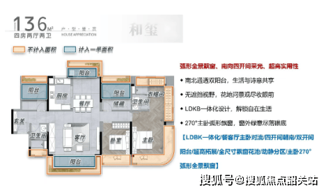 136方:多房朝南单边无遮挡,南北通透双阳台保证采光通风,主卧配备270度L型大飘窗。