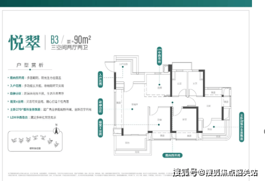项目主要涵盖约82-113㎡的三四房户型,满足了刚需和刚改购房者的不同需求。其中,悦翠户型建面约90㎡,为三空间两厅两卫设计,户型布局方正,空间利用率高。客厅连接阳台,保证了充足的采光和通风;主卧配备独立卫生间和衣帽间,提升了居住的私密性和舒适度;两个次卧空间宽敞,可满足家庭成员的居住需求,也可根据需求改造成书房、儿童房等。