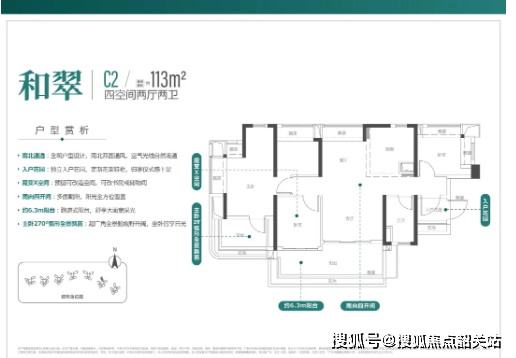 和翠户型建面约113㎡,为四空间两厅两卫设计,适合二胎家庭或三代同堂居住。户型南北通透,采光通风效果极佳;客餐厅一体化设计,连接景观阳台,拓展了室内空间视野;U型厨房设计,操作空间充足,方便家人烹饪;四个房间布局合理,每个房间都有良好的采光,主卧套房设计,配备独立卫生间和大飘窗,提升了居住的品质感。