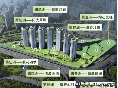 项目提出了“公园九洲”理念,营造“先进公园,再归家”的生态居住氛围。南面和东面坐拥九洲双园,搭配小区内七大运动主题大花园,拥有约7.2万㎡景观配套,这样的景观规模在海珠十分少见,只有中海大境、琶洲南等豪宅盘才有这个条件。在园中造园,景中取景,塑造九大节点,将自然与空间联动,为业主创造了沉浸式的景观体验。