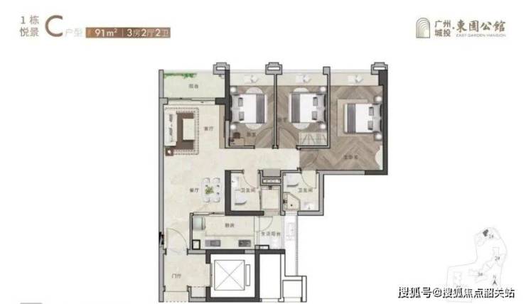 对于预算有限或刚步入社会的年轻家庭,城投东园公馆推出了九十一平方米的紧凑型三房户型。这款户型虽然面积不大,但设计巧妙,充分利用了每一寸空间。进门即是宽敞的玄关,既起到了收纳作用,又增加了室内的私密性。客厅与阳台相连,采光通风良好,营造出明亮舒适的氛围。餐厅与厨房一体化设计,方便日常烹饪和用餐。三个卧室大小适中,布局合理,满足了家庭成员的基本居住需求。虽然面积紧凑,但功能齐全,完全能够满足三口之家的生活需要。此外,该户型的总价相对较低,降低了入驻越秀区的门槛,让更多年轻人有机会在繁华的市区安家落户。