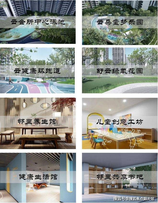 园林景观体系采用新加坡式生态社区规划理念。社区内部规划6大主题园林空间,包括云会所泳池空间约600㎡、儿童成长主题乐园、全龄健身运动区、600米环形跑道系统以及康养型老年活动空间。多功能社区空间有助于形成邻里型生活社群结构。