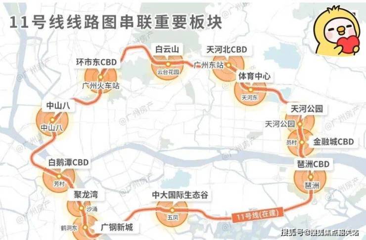 保利越秀天启距已开通的广佛线沙涌地铁站直线约 300 米,步行约 450 米,1 站可达海珠西。可换乘多条地铁线路,20 分钟内畅达老城区、珠江新城、广州南站等地。此外,地铁 11 号线在建,附近还有地铁 1 号线、10 号线(在建中)、22 号线(在建中),形成五地铁环绕格局。