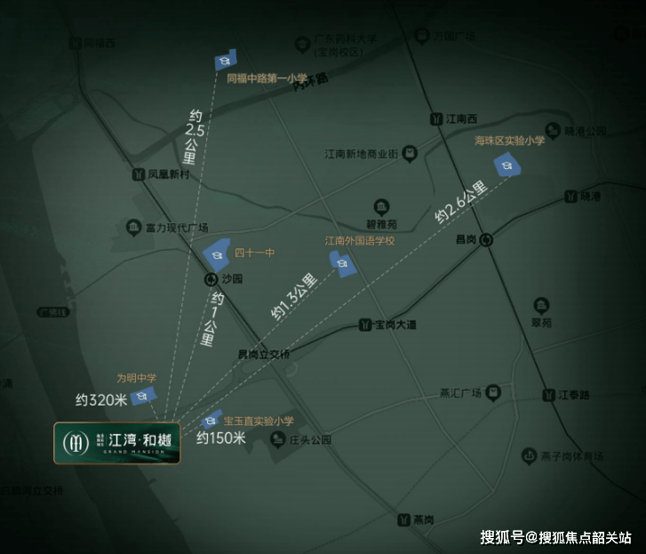 越秀江湾和樾周边享有千亿万博配套辐射,商业、教育、医疗、休闲配套应有尽有。商业上,除自身配建的 3.29 万㎡商业,周边四大商圈环绕,凯德乐峰广场、富力海珠城等大型商业体满足高端消费需求,同时近邻太古仓等文创商业地标,融合休闲与文化体验。