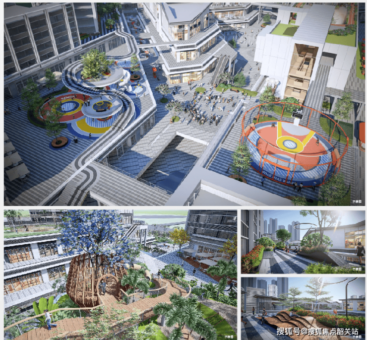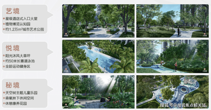两轴三环九节点,高氧森居公园住区。中海汇德里,约70%软景植物覆盖率,全维度空间高密度种植。